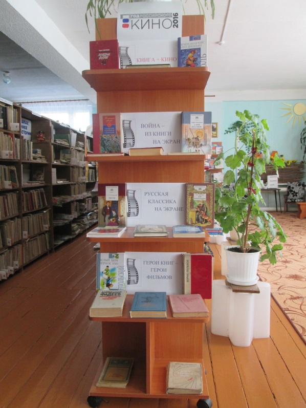 Продолжается работа в рамках Года российского кино. В библиотеках экспонируются книжные выставки: «Год российского кино – 2016» (ЦРБ), «Книга плюс кино», «Книга живет на экране» (ЦДБ) и другие. Солдатской библиотекой подготовлены и проведены библиосумерки «Территория кино». Посетители мероприятия смогли поучаствовать в розыгрыше кинолотереи «Узнай любимого актера», киновикторине «Продолжи фразу», побывать на презентации книжной выставки «Книга плюс кино», просмотреть кадры видеопрезентации из любимых художественных фильмов.