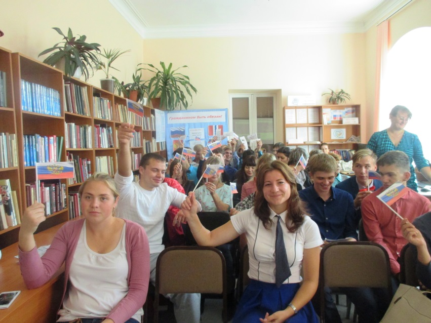 В Центральной районной библиотеке в рамках районной Декады молодого избирателя «Будущее зависит от нас!» состоялась Торжественная церемония посвящения в молодые избиратели. Участниками церемонии стали молодые люди района, которые на предстоящих выборах депутатов Государственной Думы РФ и Законодательного Собрания Омской области впервые воспользуются своим избирательным правом. Это Олеся Волкова, Анастасия Гаева, Мария Зюлина, Олег Царёв, Руслан Шевелёв. Ребята показали свои знания по истории России, избирательного права, произнесли слова клятвы.
