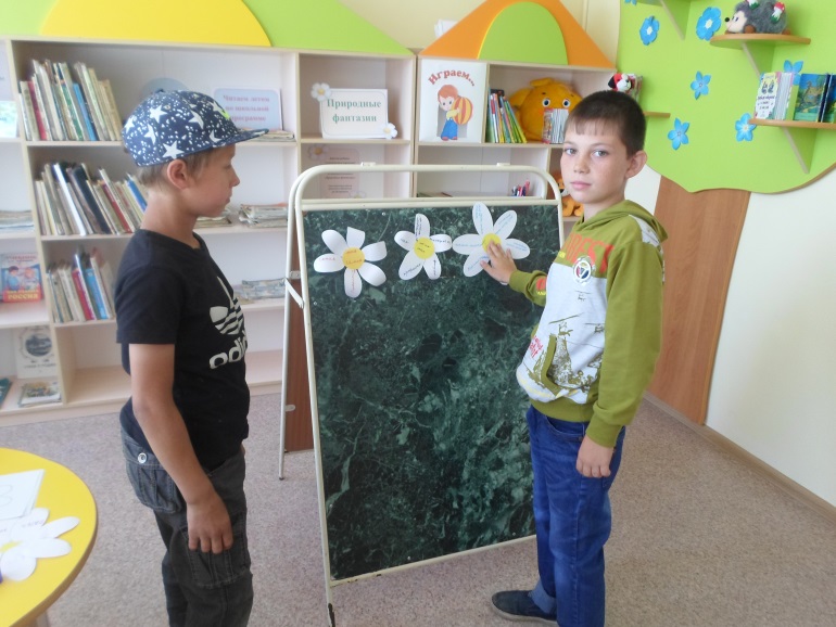 Центральной детской библиотекой для младших школьников Гимназии и Лицея организован мастер-класс «Подари ромашку и свою любовь!». Из заранее приготовленных шаблонов ребята клеили ромашки, на лепестках которых писали признания в любви и пожелания членам своих семей, затем помещали их на рекламный щит.
