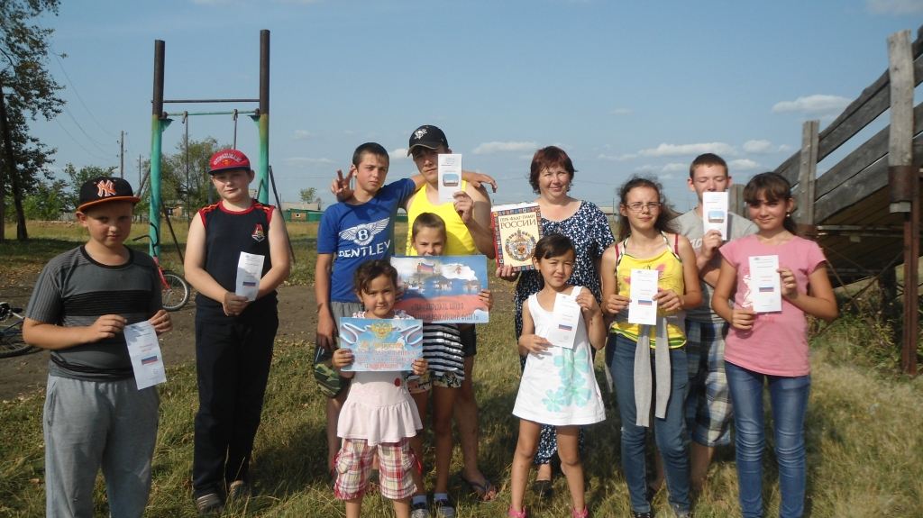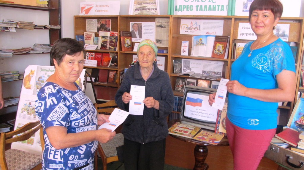 Совместно с Домом культуры провели мероприятия для школьников: Кабырдакская библиотека – час истории «равнение на флаг России», Никольская библиотека – викторину «Ты – гордость наша, трёхцветный российский флаг». В Солдатской библиотеке состоялась презентация книжной выставки «Символы величия и уважения России». Юные читатели Малиновской библиотеки приняли участие в познавательной игре «Символ Родины моей». Атрачинской библиотекой для детей проведён час гражданственности «Наш герб и флаг, овеянные славой», в ходе которого познакомились с историей праздника, отвечали на вопросы о символах России, отгадывали кроссворд и складывали пословицы о Родине. Участники акции «Триколор страны родной», которую провела Ново-Кошкульская библиотека, получили буклеты с одноимённым названием.