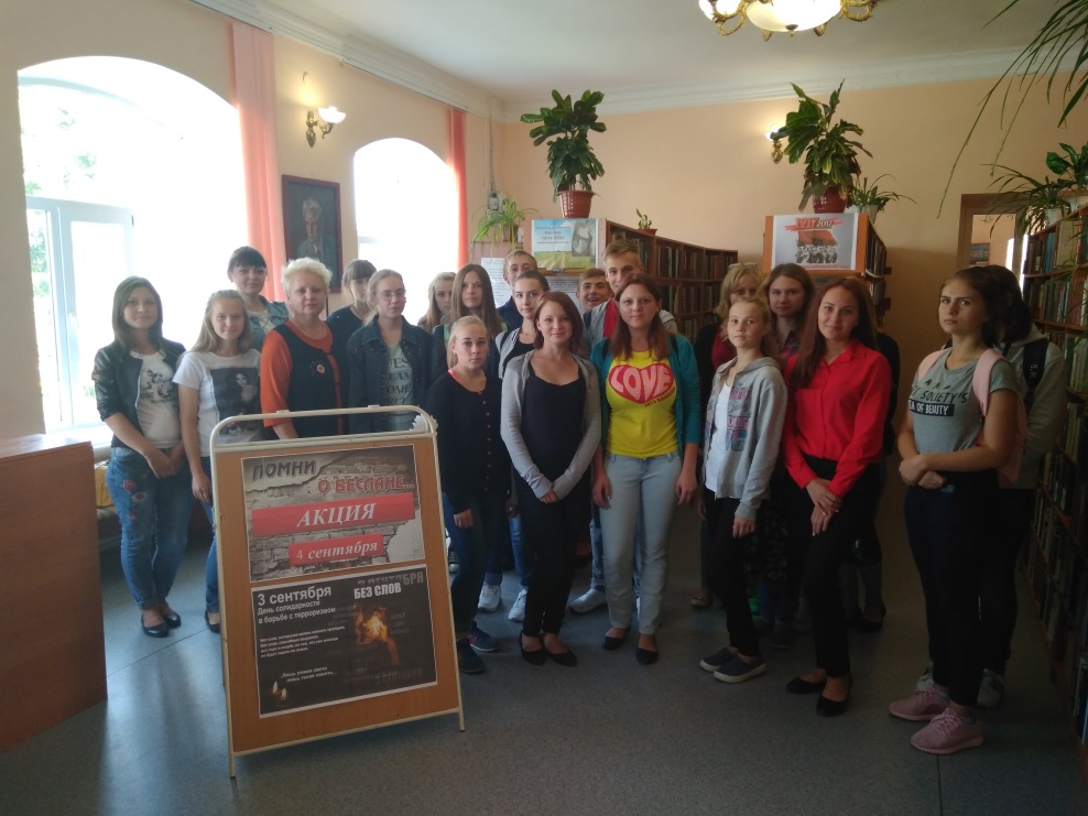 Также прошел цикл мероприятий, посвященный Дню солидарности в борьбе с терроризмом. В ходе районной акции «Памяти Беслана» её участники получили буклеты, закладки, листовки с информацией о Бесланской трагедии. Во всех библиотеках функционировали тематические книжные выставки.