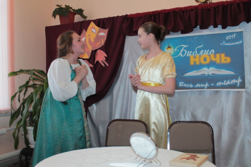 Тюкалинск в очередной раз присоединился к ежегодной Всероссийской акции "Библионочь". Состоявшаяся 18 мая в центральной районной библиотеке имени Л. Иванова Библионочь "Весь мир-театр" объединила любителей книги и театра: молодёжь и старшее поколение.