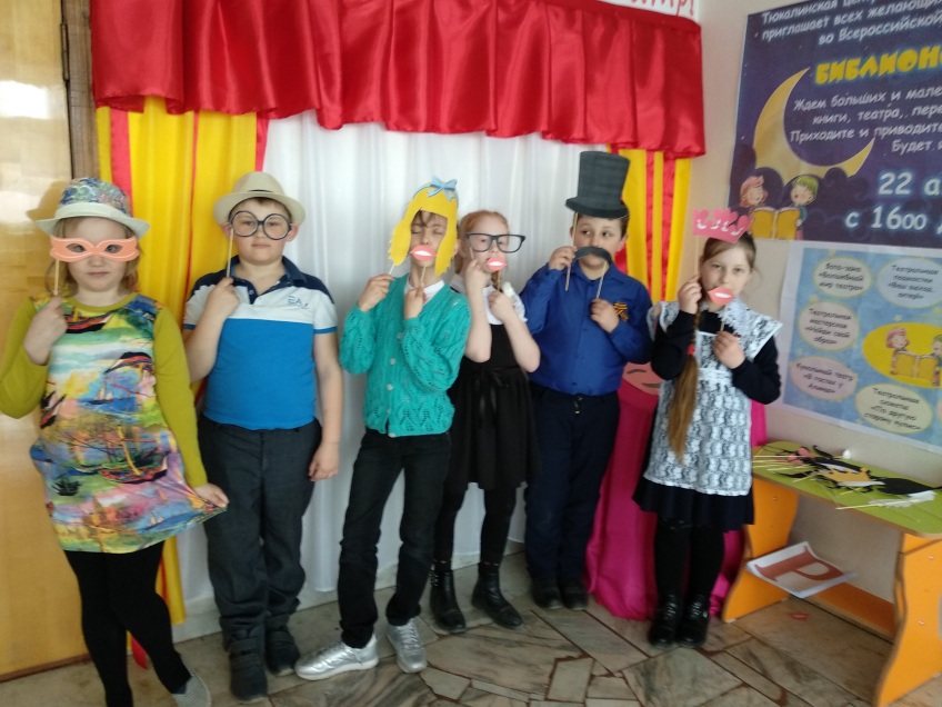 Центральная детская библиотека приняла участие во Всероссийской акции Библионочь-2019, организовав для третьеклассников Гимназии праздник «Весь мир – театр!». Участники мероприятия совершили увлекательное путешествие по творческим интерактивным площадкам: «Театральные подмостки», «Ваш выход – актёр!», фотозона «Волшебный мир театра», театральная мастерская «Найди свой образ», кукольный театр «В гостях у Алины», театральные сюжеты «По другую сторону кулис» и тем самым смогли окунуться в волшебный мир театра, перевоплотившись в актёров, режиссёров, сценаристов. Также приняли участие в интерактивной игре «Театр! И оживает чудо!». Кульминацией праздника стал флеш-моб, в котором дети примеряли и передавали друг другу театральные маски.