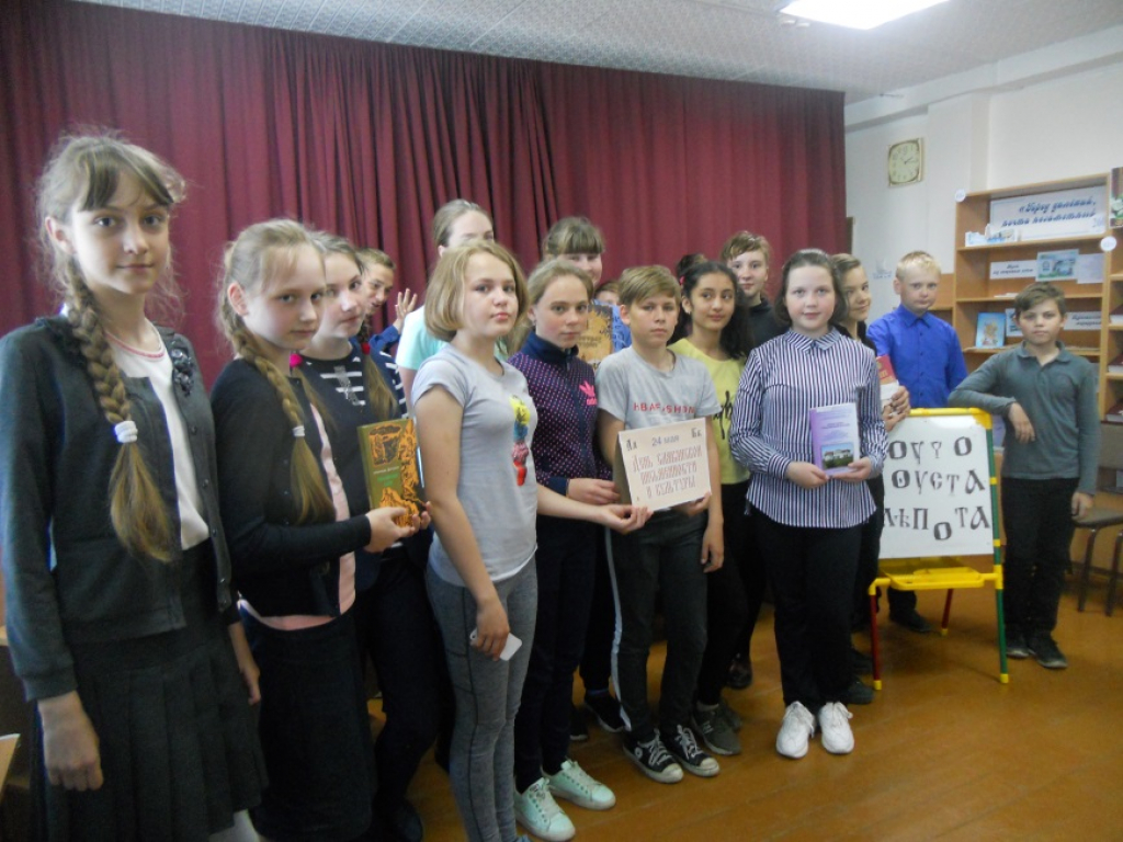 В центральной детской библиотеке для шестиклассников Гимназии состоялся православный праздник «Через века несущие свет». Хронологический библомикс «От первых свитков до больших томов» в сопровождении книжной выставки «Святое дело просветителей славянских» и видео-презентации «Слово – драгоценный дар» познакомил присутствующих с создателями славянской письменности - Кириллом и Мефодием, историей зарождения письменности и появления первых грамматик (книг о правилах русского языка). Ребята придумывали иероглифы к предложенным словам, читали старославянский текст, составляли слова из букв кириллицы. В библиотеках района прошел цикл познавательных часов «Славянские просветители Кирилл и Мефодий». Литературу по теме представила книжная выставка «Славянских букв серебряная россыпь».